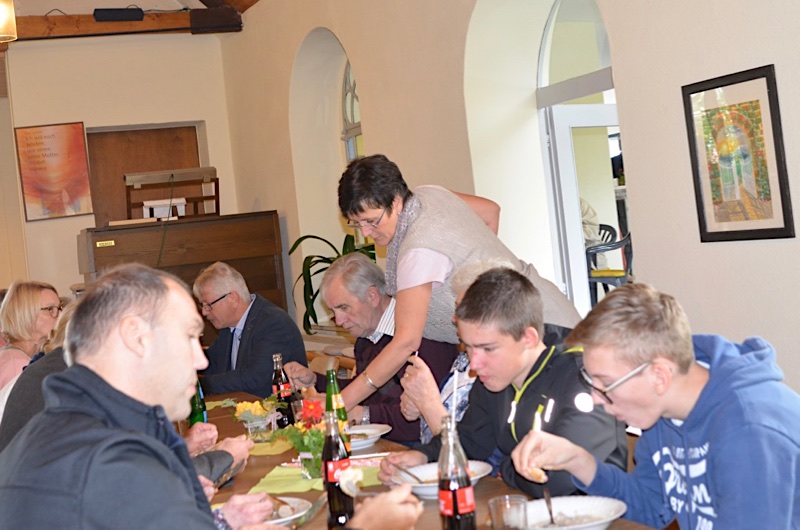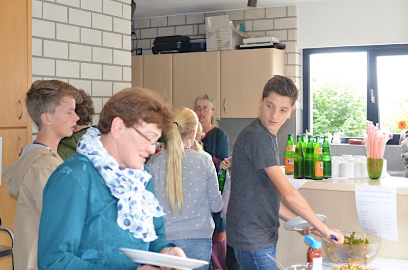 Nach dem Gottesdienst gab es Salate, Suppen und Würstchen zum Mittagessen und anschließend Kaffee und Kuchen.